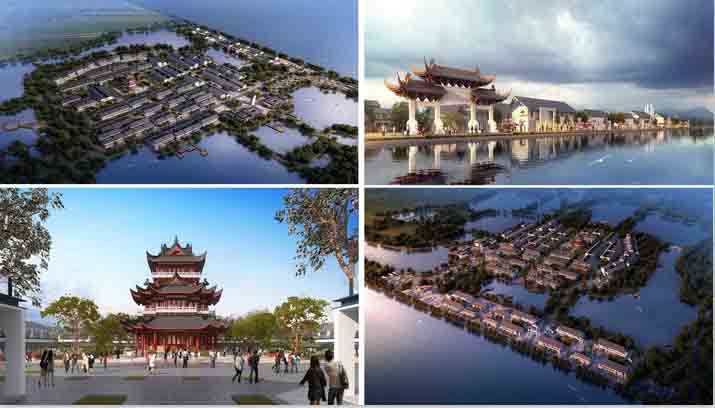 北岳家莊新村村口正在規劃建設一座村口牌坊,左側是三支船漿組成的“川”字,右側由兩側古書構成“頁”字,左“川”右“頁”正好組成一個“順”字的牌坊寓意出入平安和順。剛剛完成主體建設的北岳家莊村“揚帆廣場”,由“水之韻、帆之舞、風之聲、童之趣”四個版塊組成,既具備休閑娛樂功能,又集中體現了湖區村特有的元素和風格。特別是由五面造型藝術的風帆組成的“帆之舞”版塊,與村口“順”字牌坊遙相呼應,寓意“一帆風順”,也預示著城鄉發展就像鼓帆而行的快船,順著社會主義新農村建設的東風,乘風破浪,揚帆遠航。