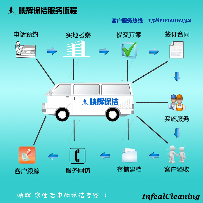 北京舒特是一家綜合性的通州區(qū)專業(yè)保潔公司,目前主營業(yè)務(wù)有:家庭保潔、開荒保潔、地毯清洗、大理石打磨拋光,托管保潔等清潔服務(wù),映輝所有保潔人員均經(jīng)過專業(yè)的保潔培訓(xùn),嚴(yán)格的質(zhì)量過程控制系統(tǒng)確保始終如一的優(yōu)質(zhì)服務(wù),下面映輝北京保潔公司服務(wù)流程向大家介紹下: